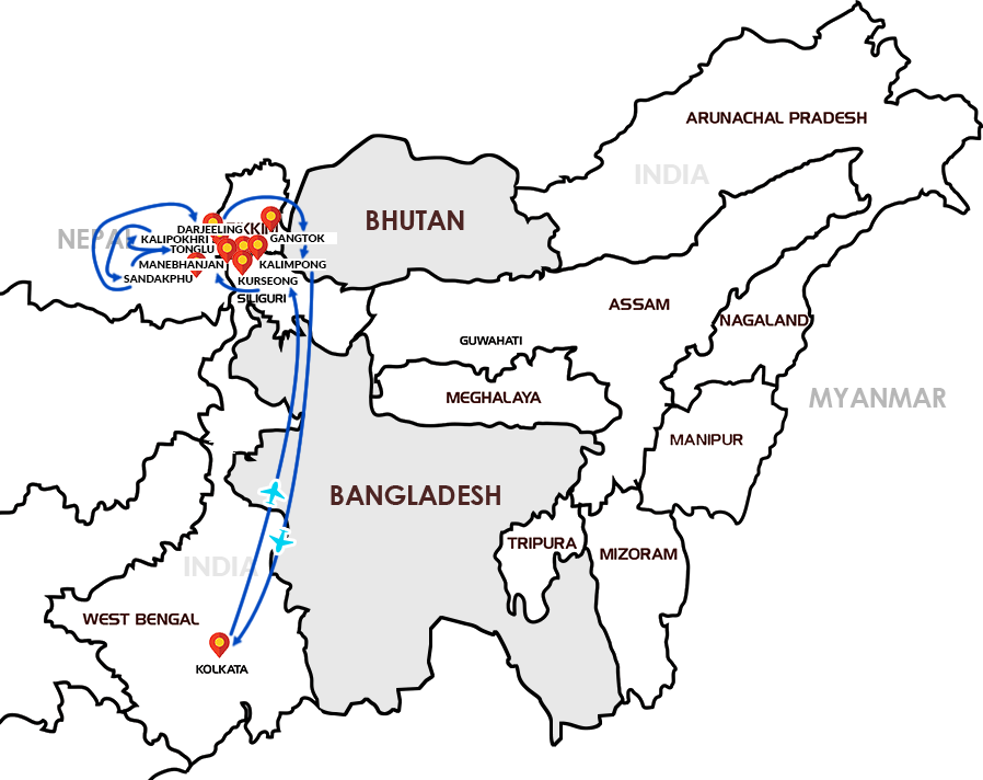 Kolkata, Darjeeling, Sandakphu, Gangtok